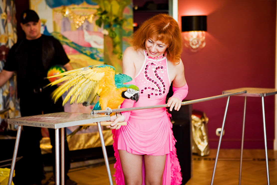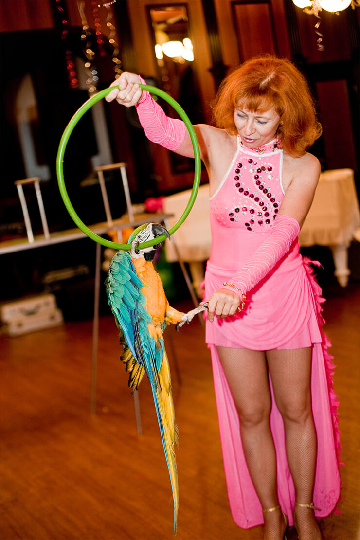 Шоу с белыми попугаями