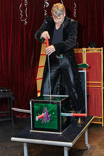 Анатолий предлагает разнообразные фокусы – от микромагии до крупных иллюзионов c интерактивным участием зрителей, которые будут распилены фокусником или сами смогут обучиться несложным трюкам под руководством иллюзиониста.