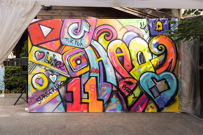 Роспись граффити стены на мероприятии - узнавайте подробности по услуге у менеджеров Рыжик и Ко.