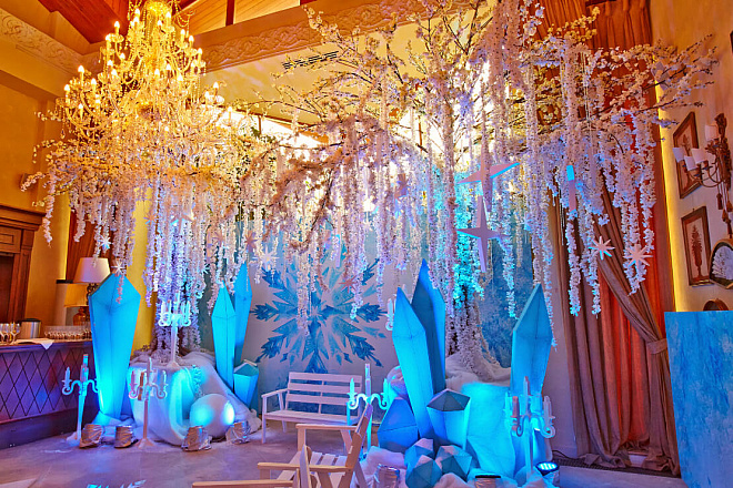 При проведении тематических детских праздников оформление играет особую роль – ткани, живые цветы, постеры, воздушные шары и особое освещение позволяют преобразить любое помещение и создать обстановку, полностью соответствующую тематике мероприятия!