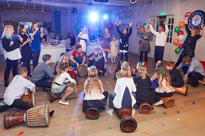 Все гости получат музыкальные инструменты и станут единым оркестром.