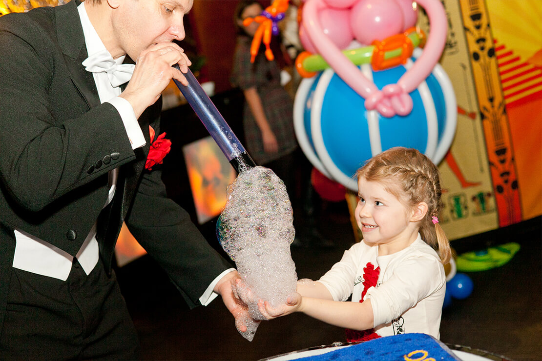 Мыльная сказка, созданная артистами Аленой и Сергеем, погрузит вас в мир полный волшебства и иллюзий! Мыльные пузыри то появляются, то исчезают, то играют всеми цветами радуги сразу. Артисты работают в сценических вечерних костюмах и только на профессиональном оборудовании. Насладитесь прекрасным номером с мыльными пузырями, почувствуйте себя героем мыльной сказки!