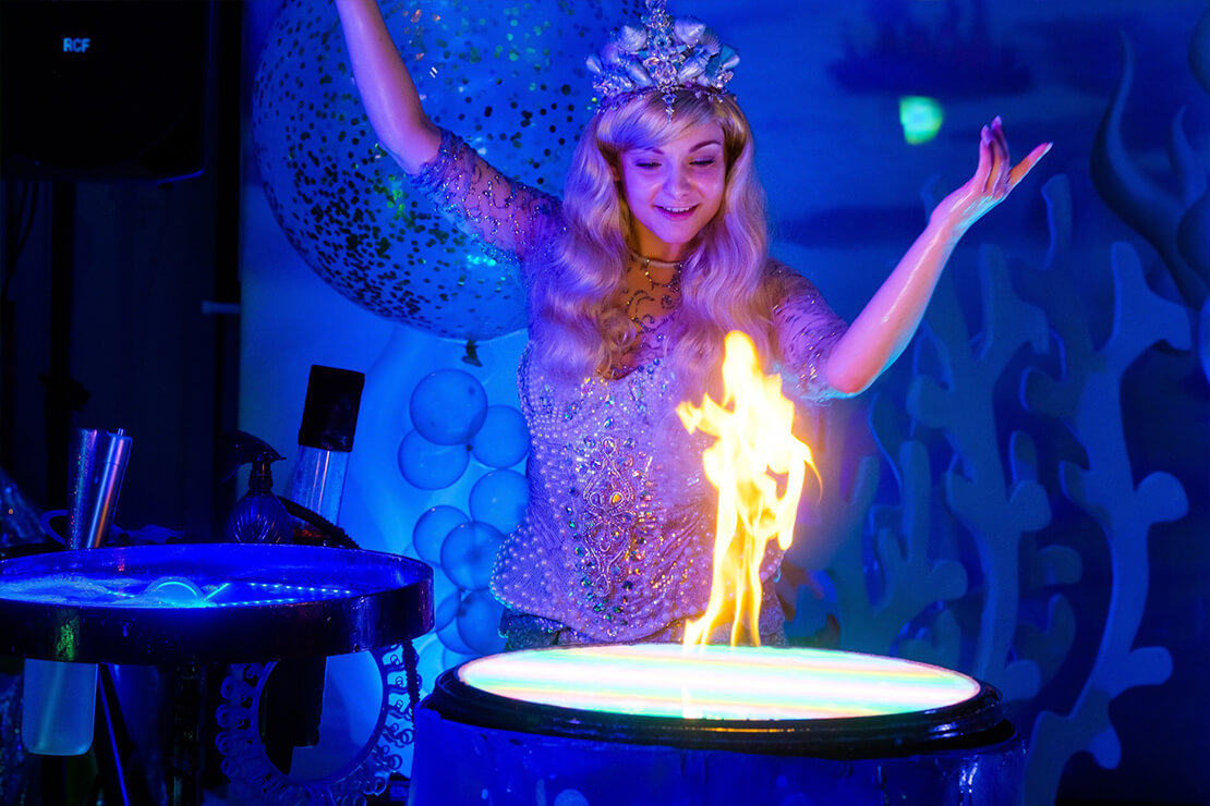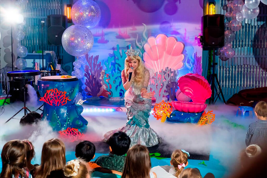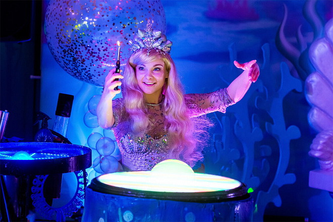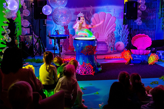 Театрализованное шоу мыльных пузырей «Русалочка» – это трюки с мыльными пузырями от самых малых до огромных, волшебство на светящимся столике и песня из мюзикла «Русалочка» в живом исполнении! Помогите Русалочке исполнить ее главную мечту – обрести ноги и стать человеком!