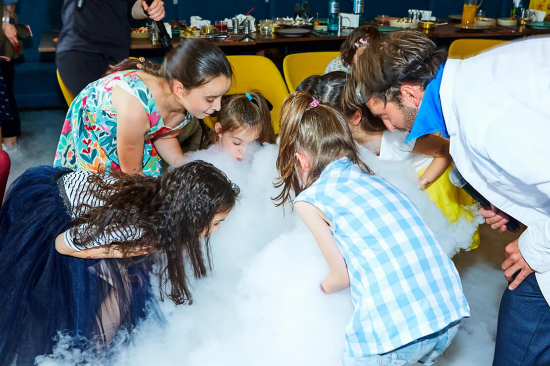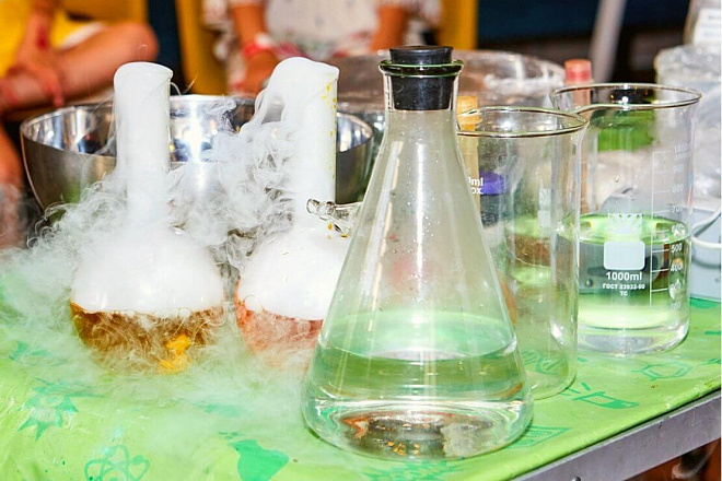 Хотите устроить на детском празднике настоящую дымовую атаку из сухого льда? Пожалуйста! Наш профессор покажет невероятный химический эксперимент!