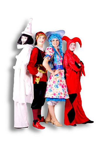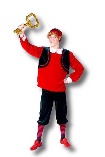 В комплект входит: Колпак, кофта, жилетка, штаны, гетры, нос.