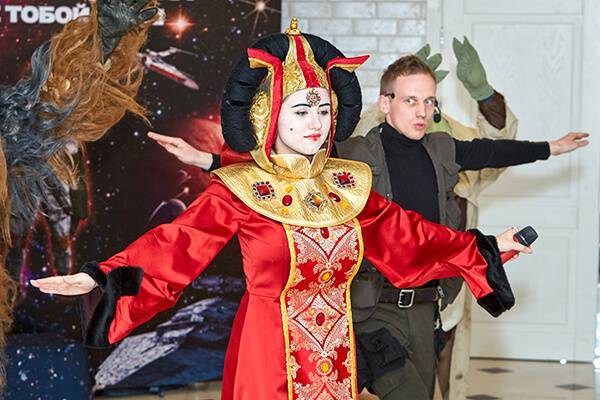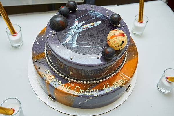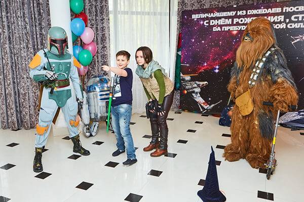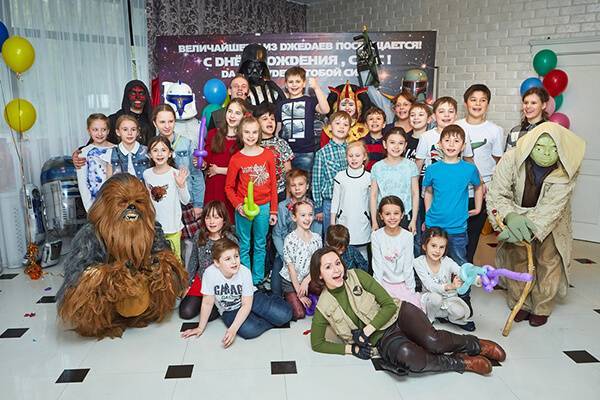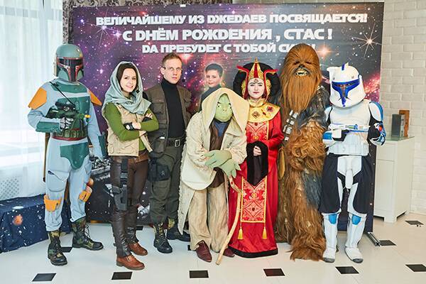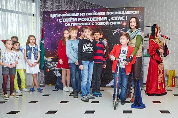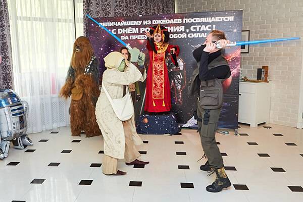 13 мая 2017 года исполнилось 11 лет храброму парню Стасу. Поздравить именинника пришли родственники, друзья и даже главные персонажи последней части легендарного фильма Звездные Воины «Изгой»: Джин и Касиан. Праздник прошел на «отлично»: ребята участвовали в гонках на самокатах, собирали звездные пазлы на скорость, стреляли из космического оружия и просто весело проводили время. Ну а главным угощением стал, конечно же, настоящий космический торт.