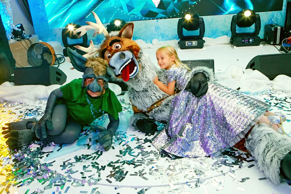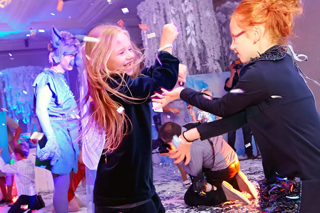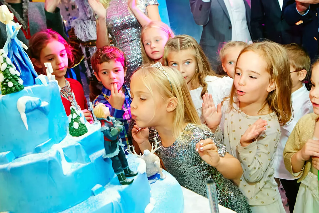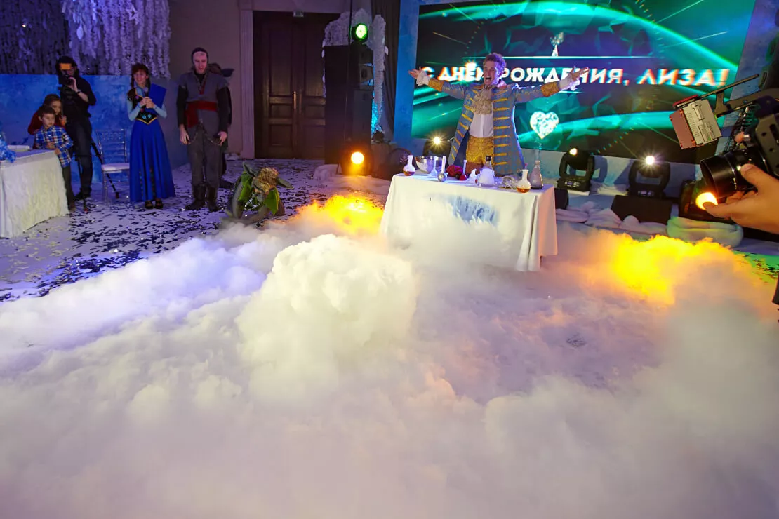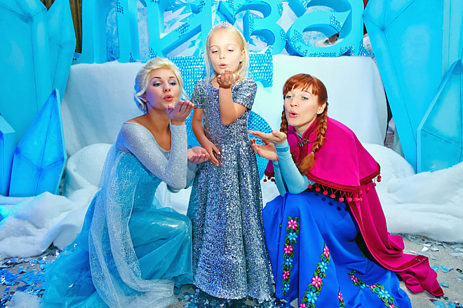 Именинницу и всех гостей на каждом шагу поджидали удивительные сюрпризы!Лизу поздравляли дрессированные собачки, ученый профессор посвящал в тайны магии и льда, танцующий художник подарил имениннице ее прекрасный портрет, дрессированные попугай порадовали своими забавными трюками, солисты Кремлевского балета станцевали чудесный танец и вручили Лизе пуанты, веселый фокусник удивил всех своим мастерством и преподнес имениннице набор фокусов. И, конечно, сама Эльза не могла оставить юную принцессу без подарка и вручила ей красивейший микрофон, задекорированный стразами.