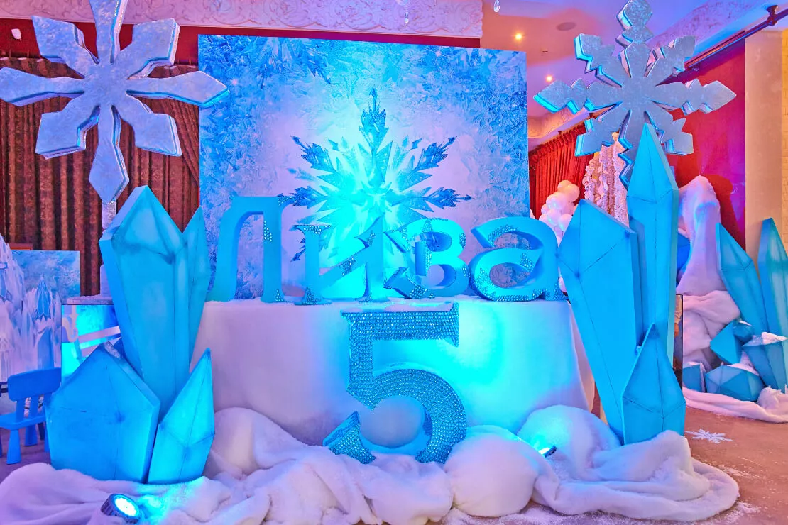 Снежный бал в честь дня рождения юной принцессы Лизы состоялся в ресторане «Подмосковные вечера», но как же сильно изменилась привычная обстановка ресторана в этот вечер! Ведь Эльза призвала силу ледяной стихии, чтобы превратить его в заснеженный сказочный замок!