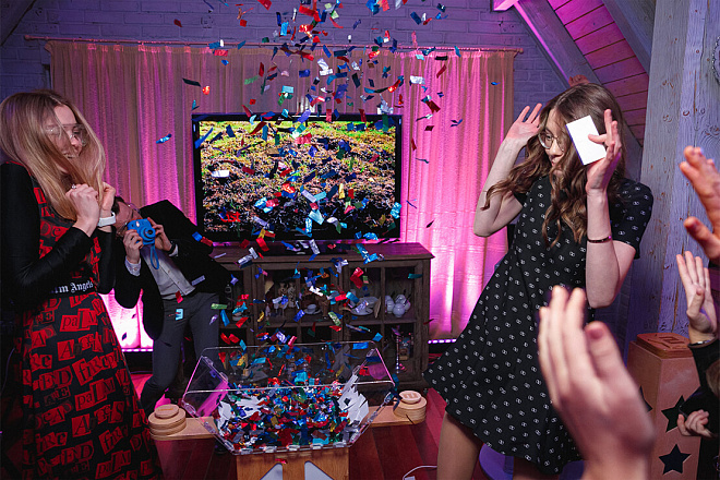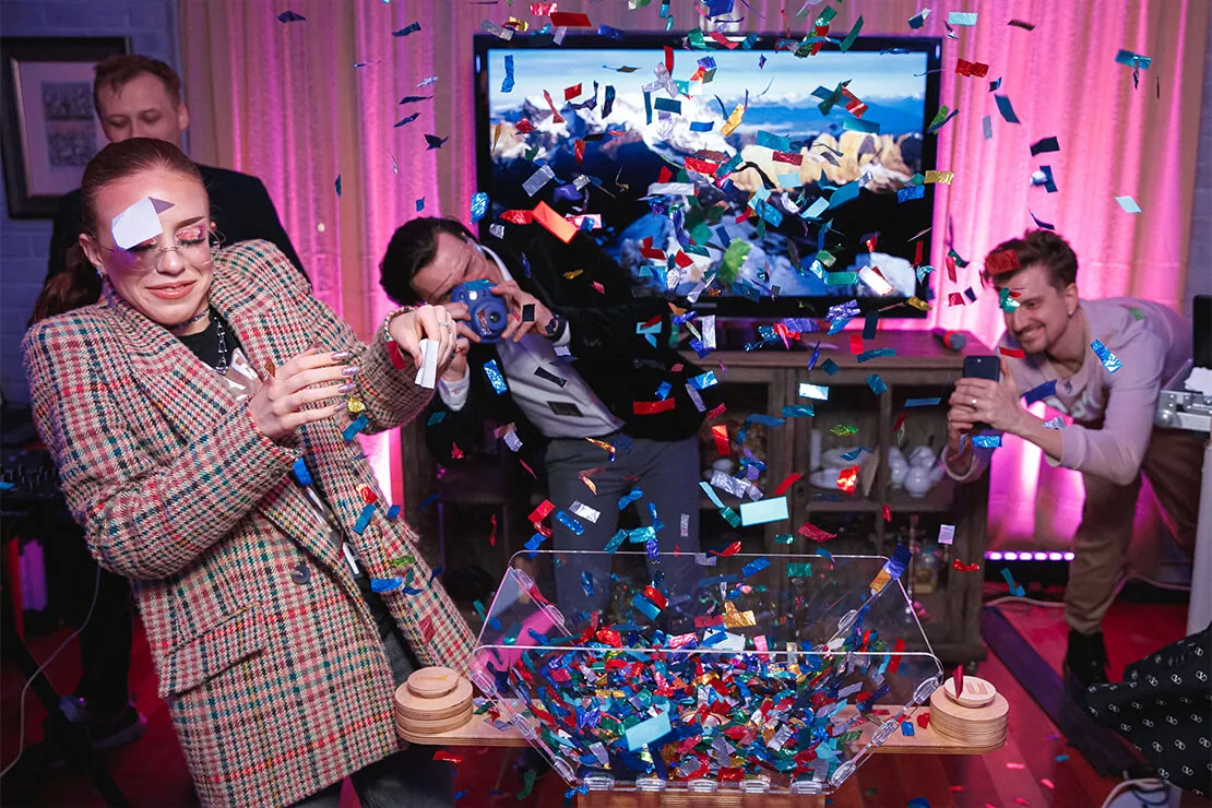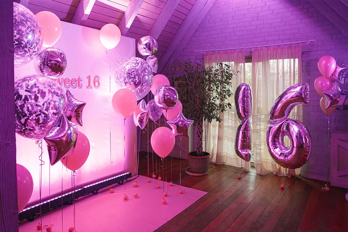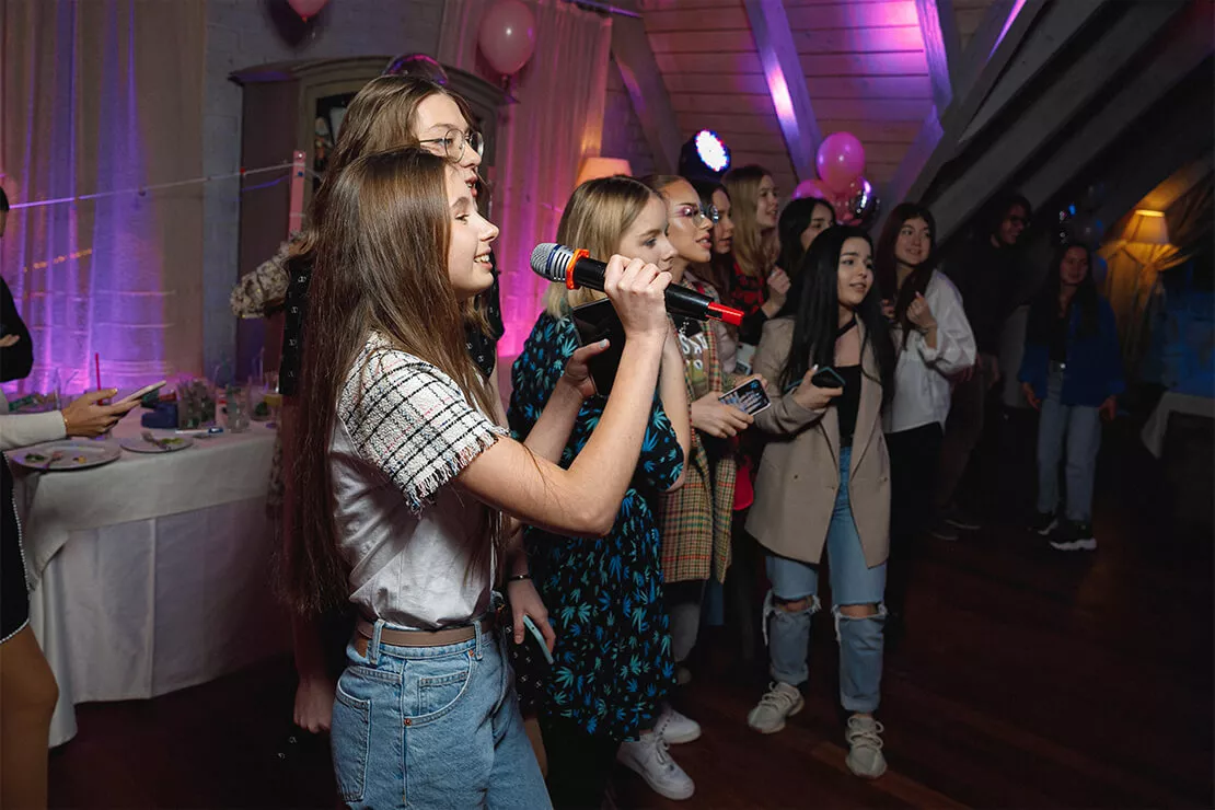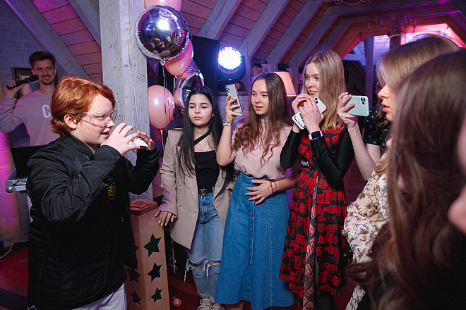 Для вечеринки «Sweet 16» мы предложили нежную фотозону в розовых тонах с воздушными шарами и заливным светом. Конкурсная программа была выстроена таким образом, чтобы задействовать всех гостей по максимум и не на секунду не терять их внимание. Кстати, ведущий праздника был не навязчив, а лишь иногда помогал ребятам участвовать в конкурсах. Также на мероприятии все гости могли сфотографироваться на полароид и украсить своими фото специальный стенд. Встречал всех гостей профессиональный бармен с потрясающе вкусными, безалкогольными коктейлями!
