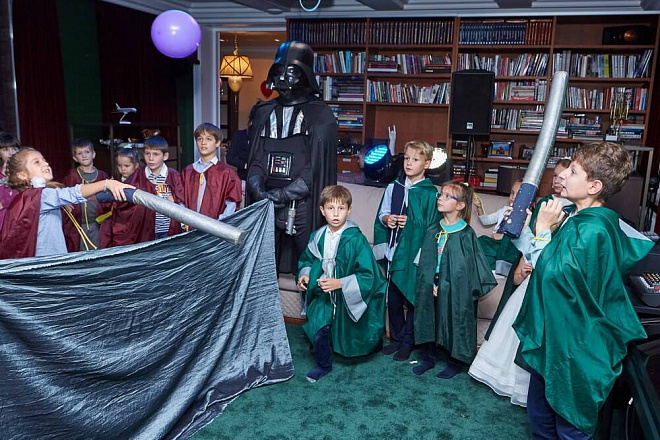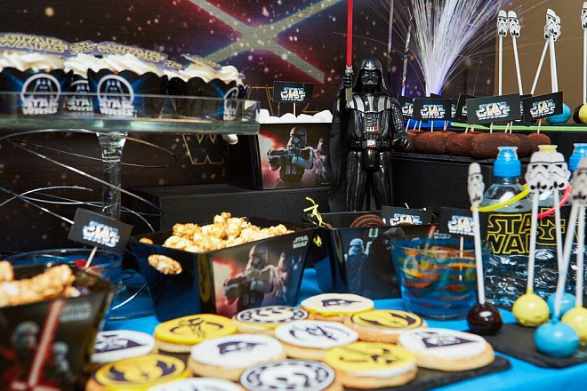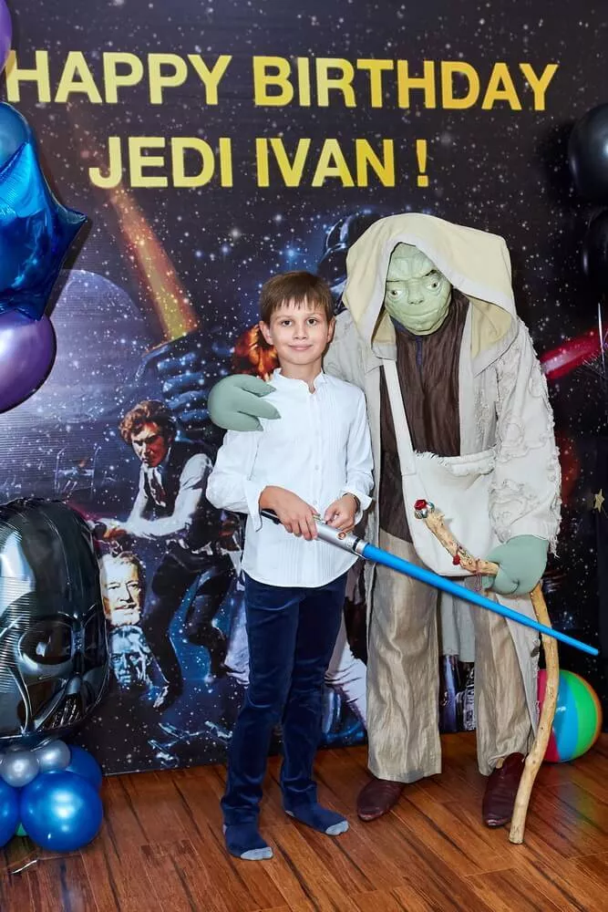 В честь восьмого Дня Рождения Ивана персонажи саги Звёздные воины заключили перемирие и пригласили гостей в Академию Джежайского Мастерства. Дом именинника был оформлен шариками, рядом с фотозоной расположился чудесный тематический Кэнди Бар.