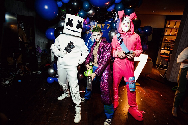 Костюм Маршмеллоу из популярной онлайн игры FORTNITE для тематической вечеринки или квеста в аренду.