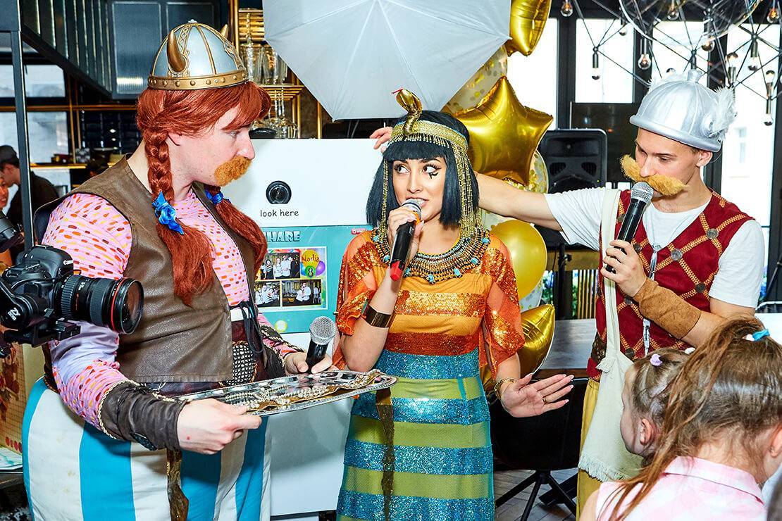 Интерактивная театрализованная праздничная программа в компании жителей галльской деревни Астерикса и Обеликса, а также друида Панорамикса, Клеопатры и даже Юлия Цезаря – идеальный формат для организации дня рождения или другого детского мероприятия как в помещении, так и на улице!