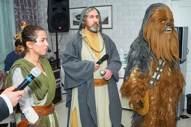 Тематический квест по мотивам легендарного фильма "Звёздные войны" – идеальный формат для организации дня рождения или другого детского мероприятия! В интерактивном путешествии ребятам поможет самый великий джедай Галактики Люк Скайуокер, его сестра генерал Лея и Чубакка.